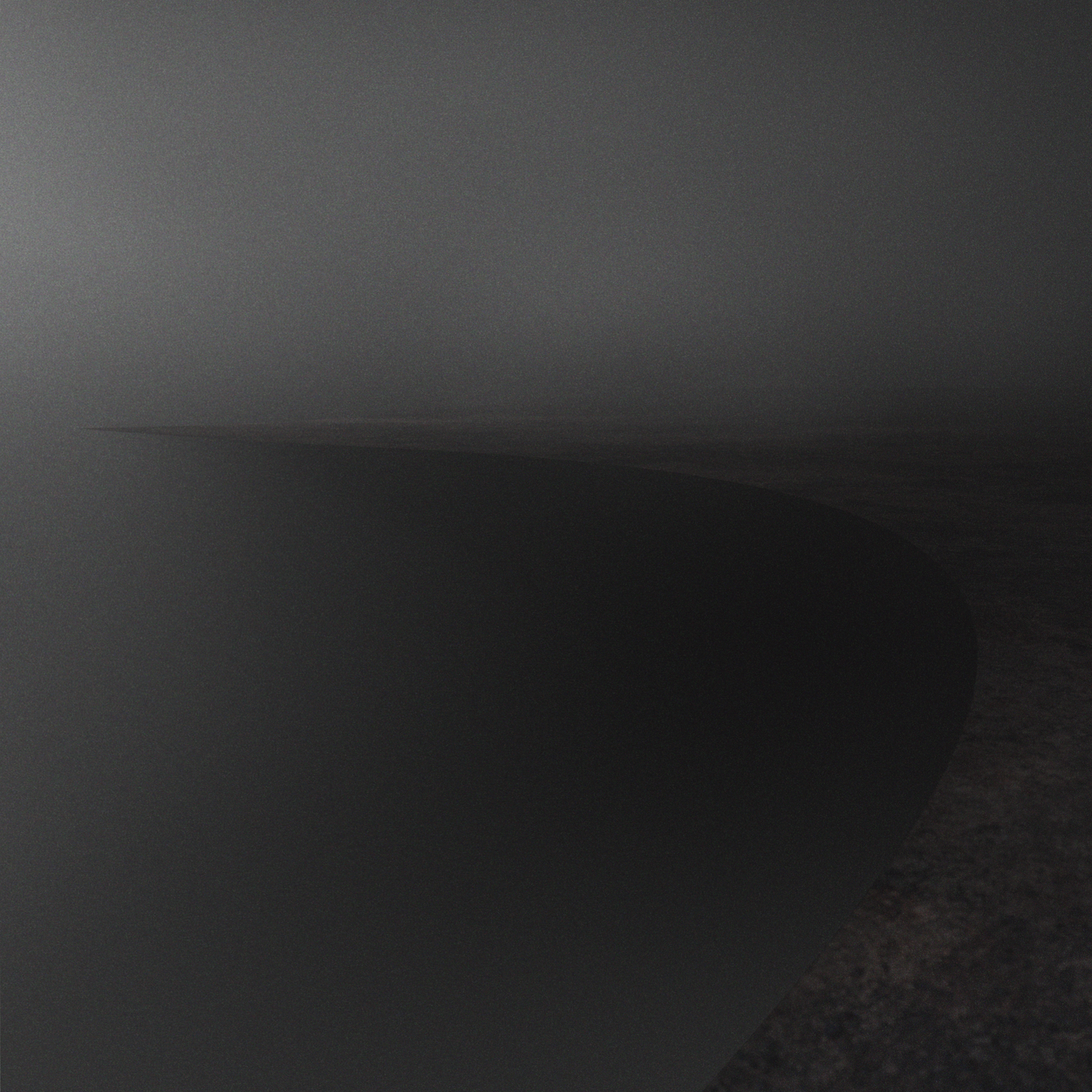 Darkness is a significant aspect of both the film and the exhibition as a whole. It creates a sense of boundlessness, and sets up conditions in which forms become more ambiguous. Within this dark setting, a single circular beam of light mirrors and inverts the black voids that appear in the film. The light is subtly modulated in synchronisation with the vibrations in the space, extending the film beyond the screen.